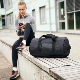 Diese Sporttasche ist ein treuer Verbündeter für jede Aktivität. Es ist eine perfekte, zuverlässige Reisetasche für Reisen, Wochenendausflüge, sportliche Aktivitäten, wie z.B. Fitness, Schwimmen oder Tennis. Ausgestattet ist sie mit einem Hauptfach, zwei Reißverschlussfächern, einem Handyfach, vier Trageriemen und zwei verstellbaren Schulterträgern. Die Sporttasche in der Hand oder doch lieber auf dem Rücken tragen - Ein kleiner Handgriff und sie verwandelt sich in einen Rucksack. Die zweite Besonderheit ist das Geheimfach an der Unterseite. Der Artikel wird geschichtet ausgeliefert. Nylon-Ripstop-Gewebe, Schwarz, 450 x 240 x 220 mm, 505 g